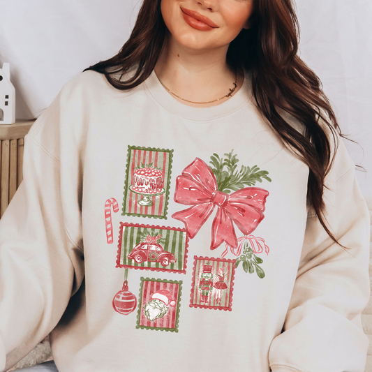 Christmas Bow & Holiday Stamps Crewneck Sweatshirt