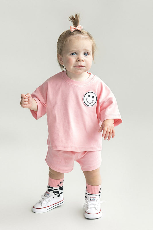 Smiley Shorts Set | Pink Peach