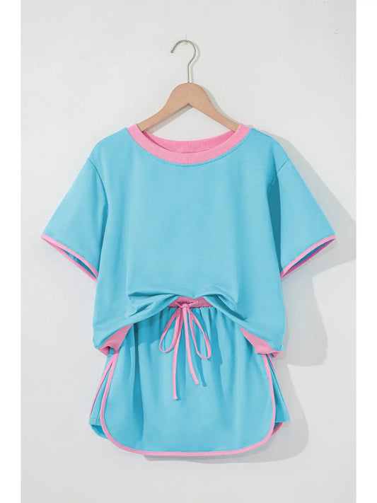 Colorblock Short Sleeve Skort Set