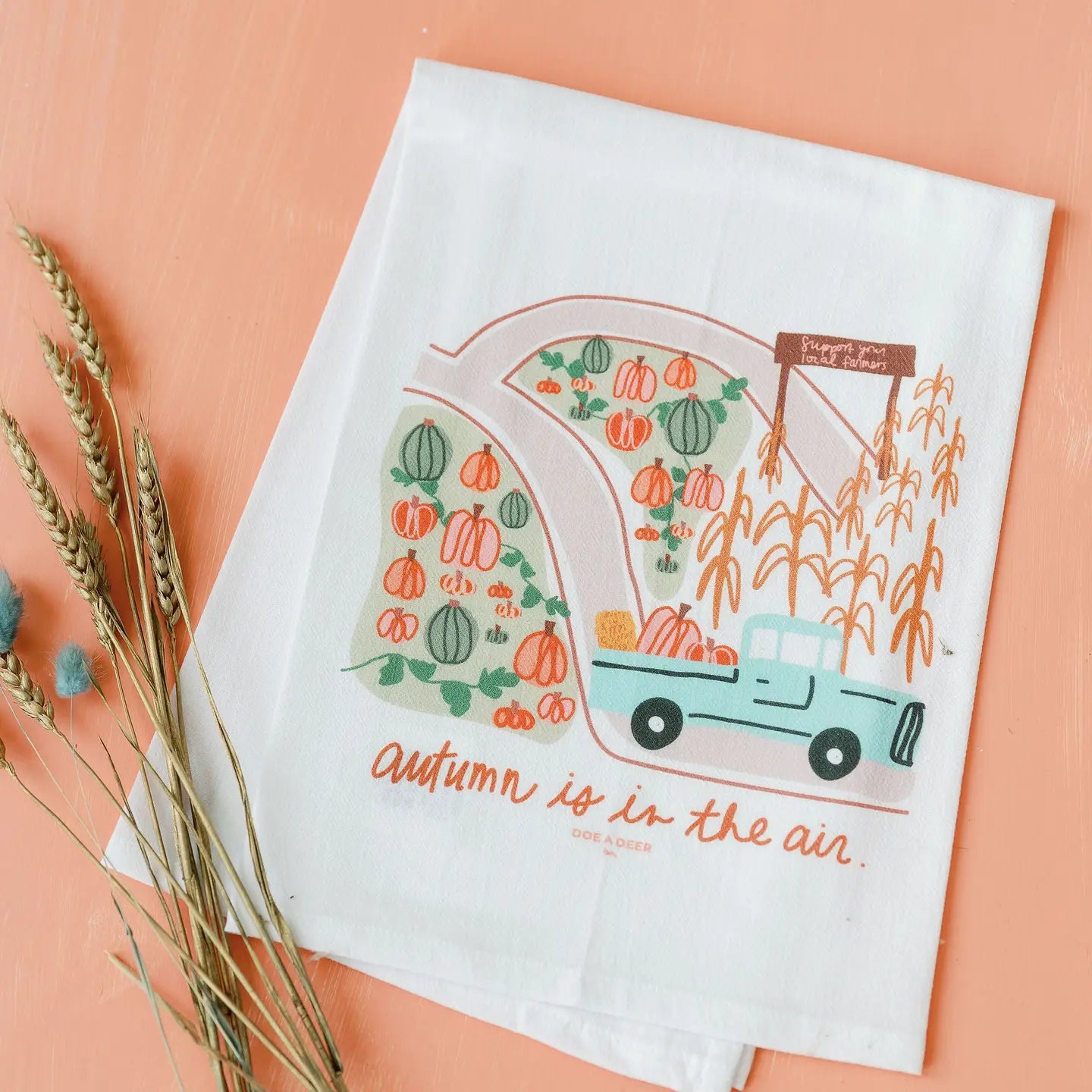 Autumn Is In The Air with this towel, and adorable pumpkins are in the patch, and the corn is ready to be harvested! The design on this towel is as if it came straight out of an Autumn story book. Little blue truck vibes maybe?! (if you know, you know!) I’m dreaming of this on oven handles, with a fall scented candle filling the room!