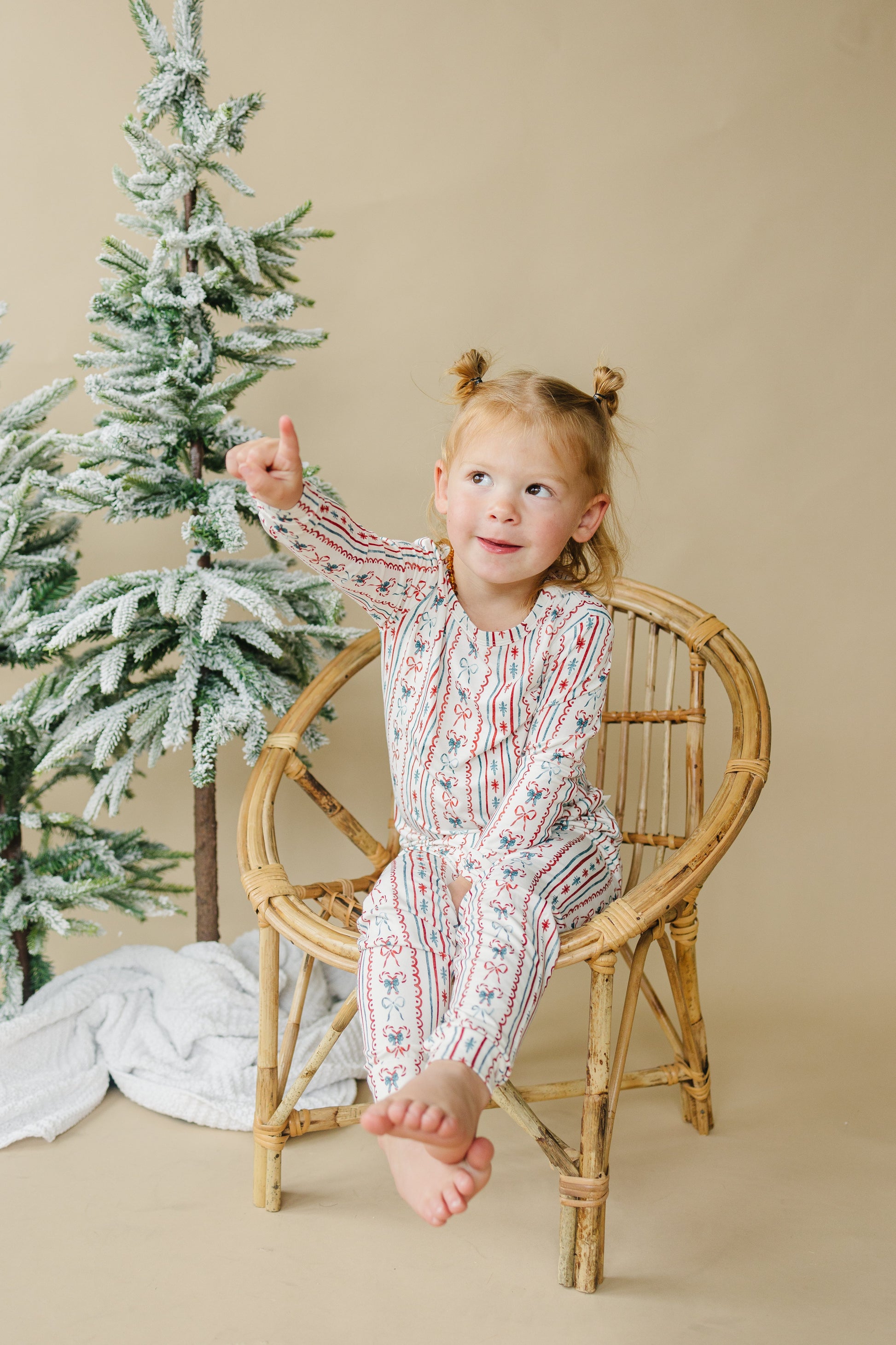 Candy Cane Bows Bamboo Christmas Pajamas Set | Toddler & Kids