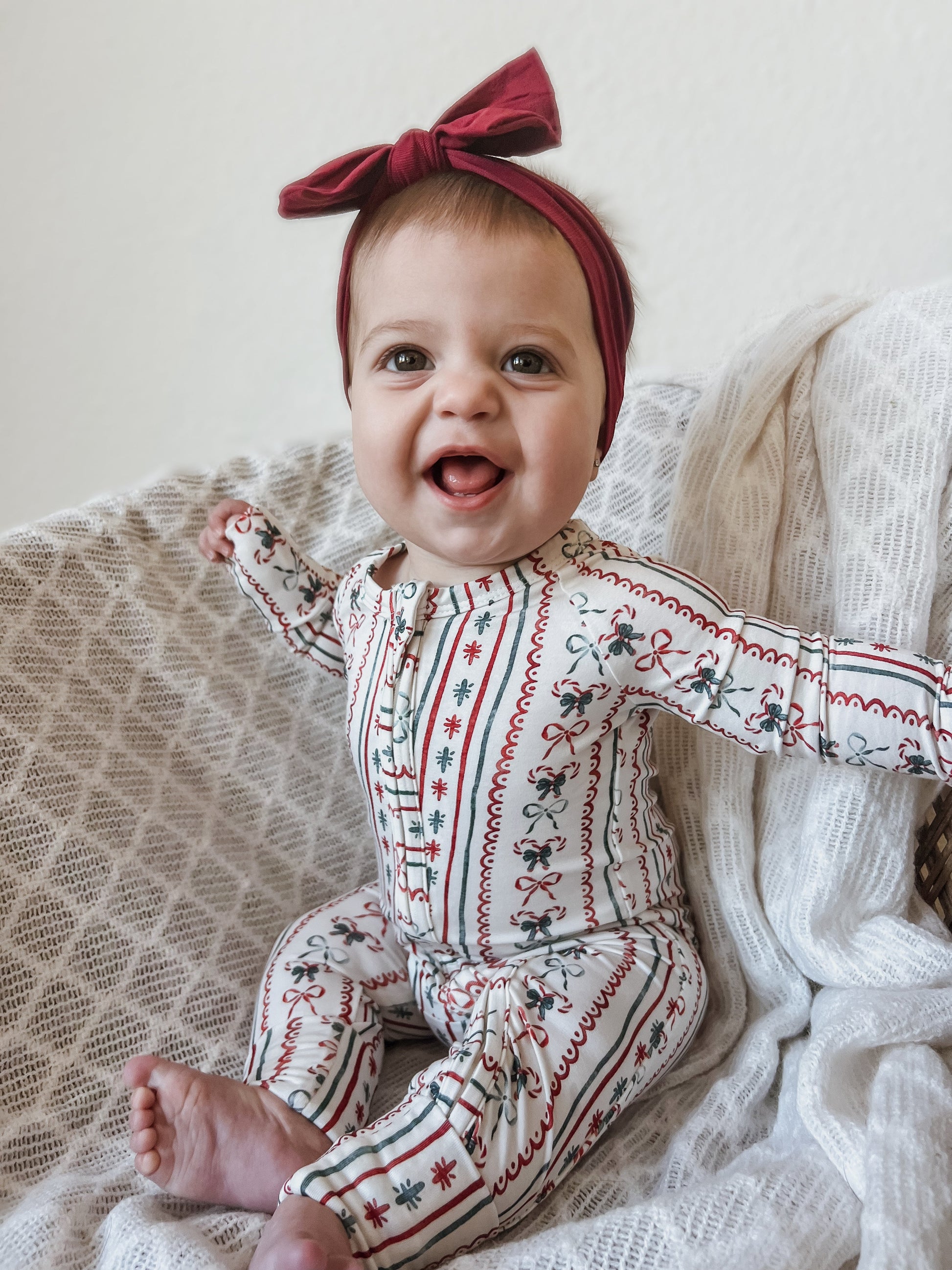 Candy Cane Bows Bamboo Christmas Pajamas Sleeper