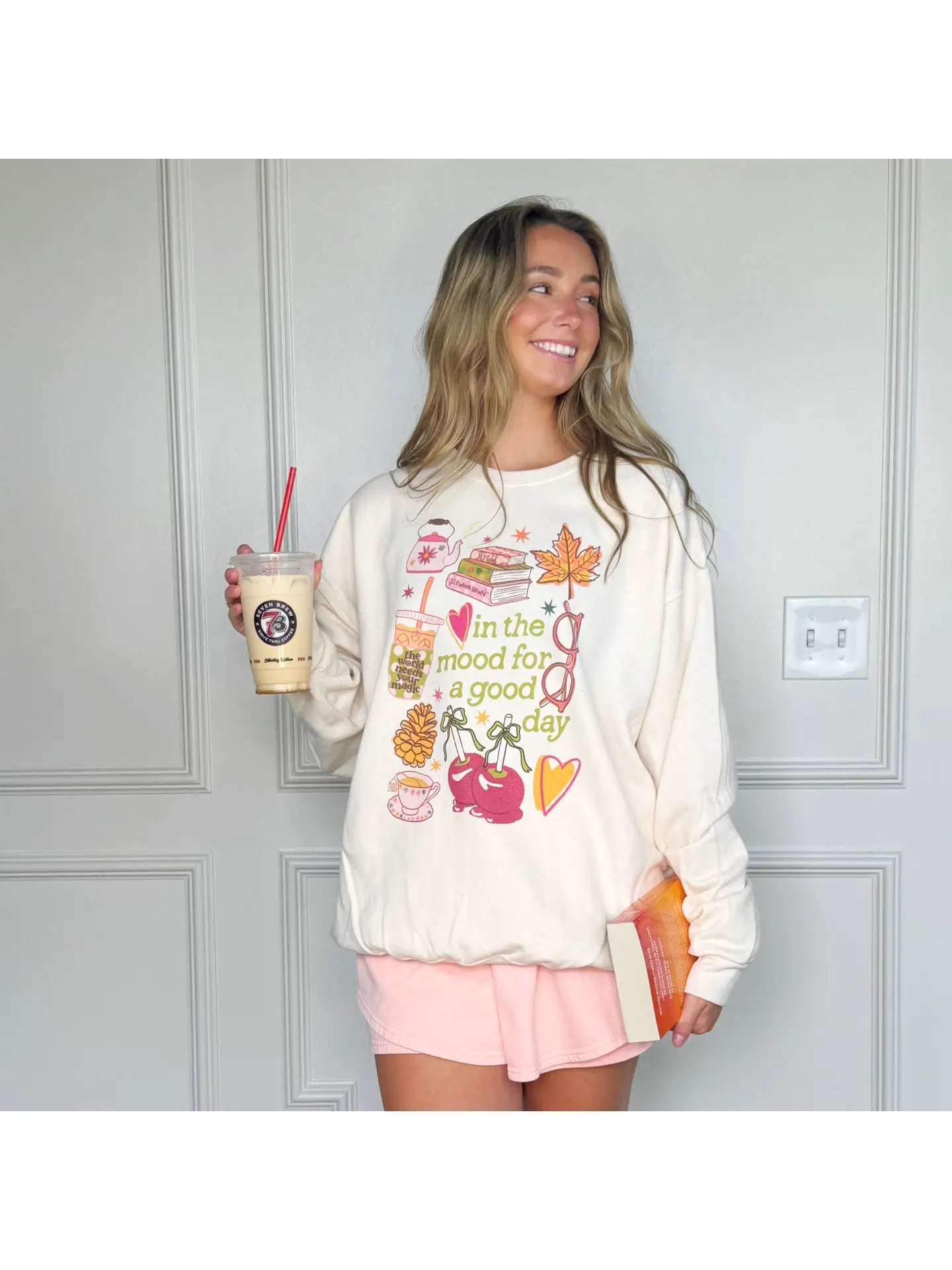 Whether you're sipping pumpkin spice lattes or jumping into leaf piles, this sweatshirt sets the mood for all your fall adventures. Embrace the season with comfort and a playful touch!