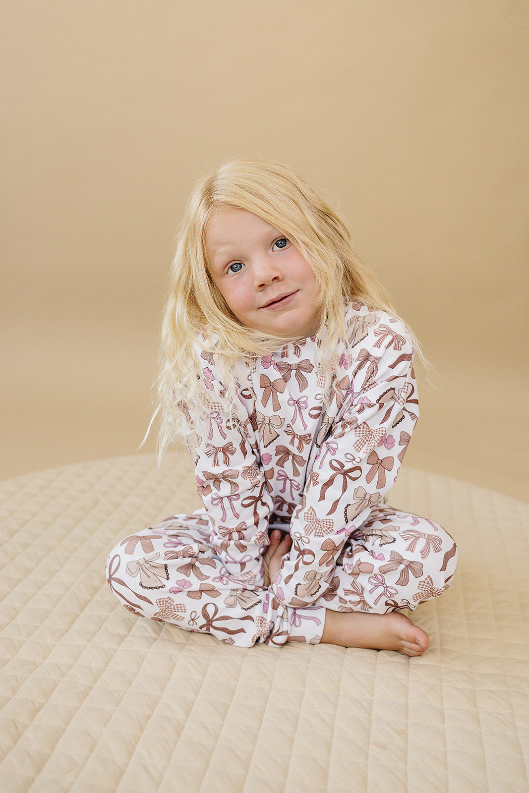 The Mocha Bows | Jogger Set is crafted from soft, breathable cotton, combining everyday comfort with effortless style. Featuring a relaxed fit, this set is perfect for playdates, lounging, and casual outings. The warm mocha tone reflects the cozy feel of fall, while the bow detail adds a sweet and stylish touch. A versatile staple that feels as good as it looks, ideal for autumn days and seasonal memories.
