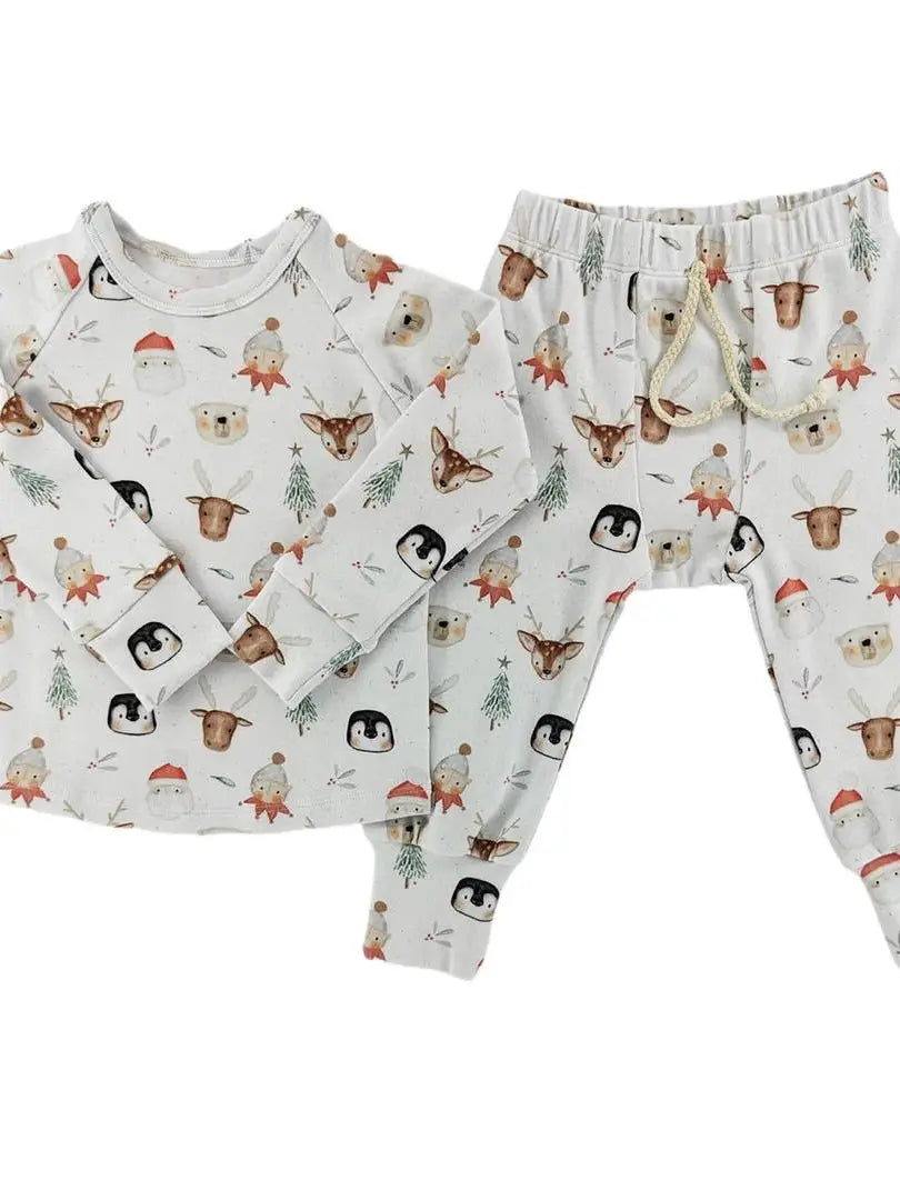 Get ready for some playful winter fun with our North Pole Pals Lounge Set! This cozy set for toddlers features adorable north pole animals on the front, perfect for keeping your little one warm and snuggly. With this set, your child will be the cutest pal in town!