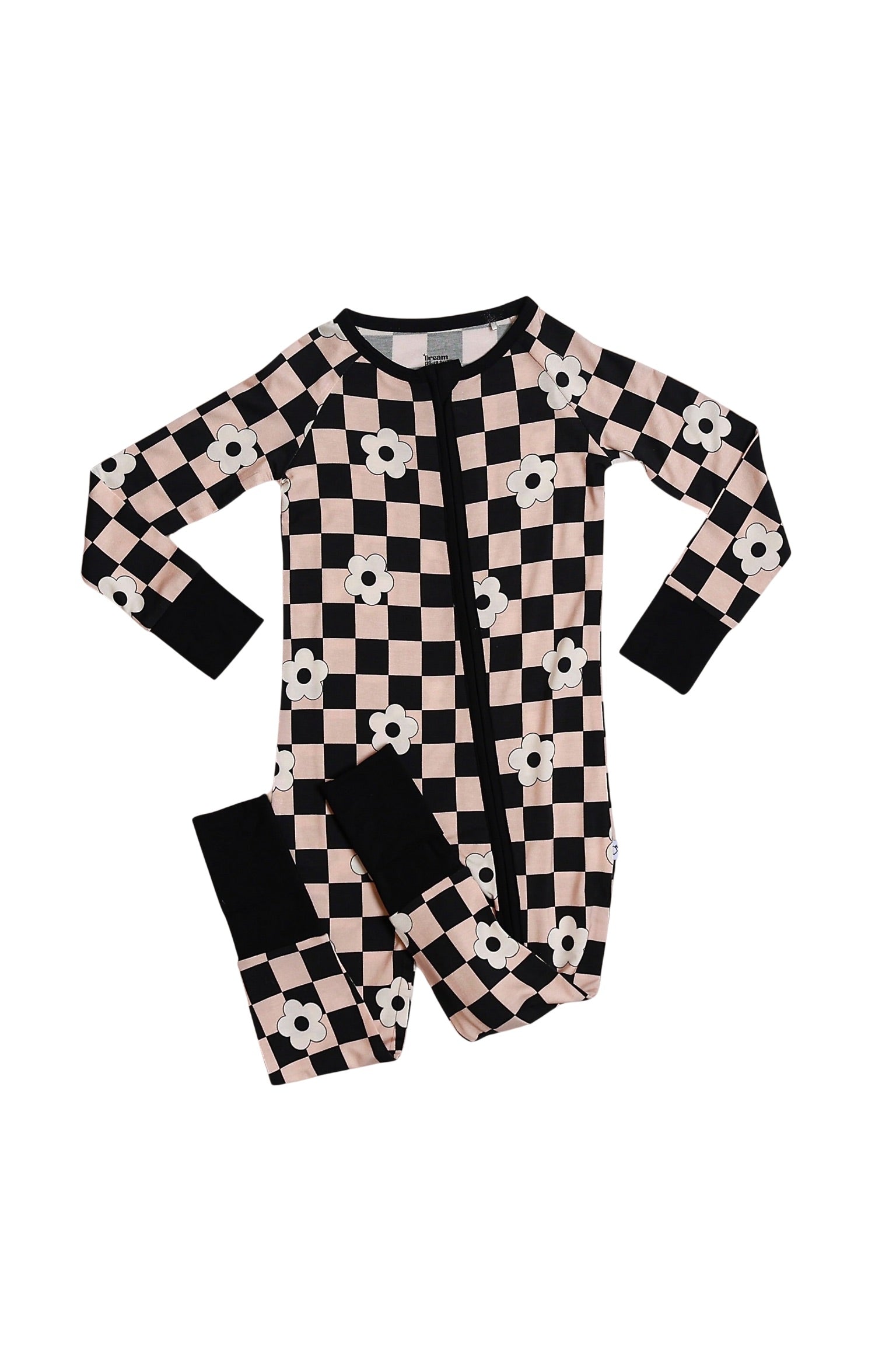 Say hello to cozy with a retro twist! Our Retro Daisy Checks Dream Romper is made from the softest, most breathable bamboo viscose, featuring a bold pink-and-black checkered print with cheerful white daisies your little one will love.