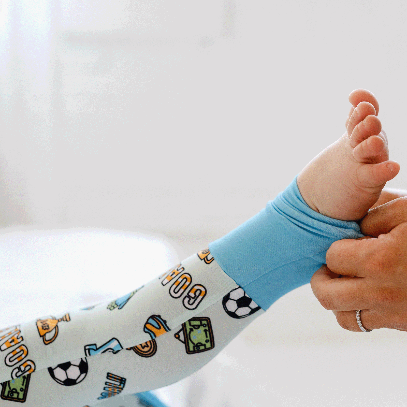 Kick off cozy days with our ultra-soft Soccer One-Piece, designed for your littlest soccer star. Made from breathable bamboo fabric, this sleeper keeps your baby comfy from morning stretches to bedtime goals. Featuring a playful all-over soccer print with balls, nets, and cleats, it’s a must-have for any future fan gearing up for their first season.
