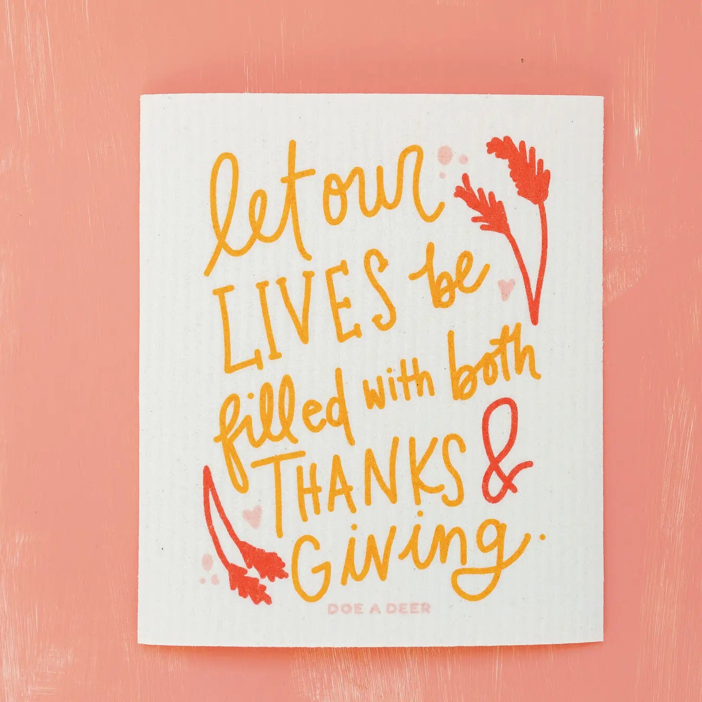 Let this dishcloth be the inspiring reminder you need as we head into a season that tends to be a little cold and dark. Adorable next to your sink and would be an adorable gift for your Thanksgiving hostess! Benefits & Features: Reusable, absorbent dishcloth perfect for cleaning dishes, countertops and more Unique, hand-illustrated designs printed with water-based ink that won’t fade 7x8 inches of 80% biodegradable cellulose + 20% natural cotton (eco-friendly, yay!) A high-quality product that can last 4-6 months Saves time by requiring fewer washes than normal dishrags (toss in the washing machine or the top rack of your dishwasher when it needs a good clean) Dries flat and easy to store (even though you probably won’t want to because they add such a pretty pop of color to your kitchen) Printed with water-based inks