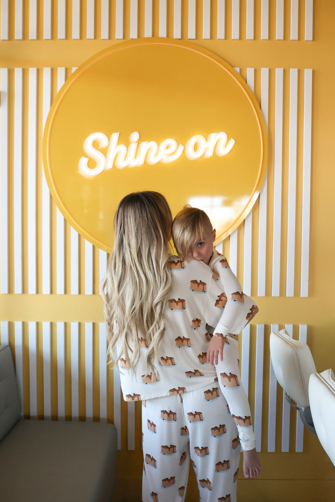 A new staff favorite! This ultra-comfy set is perfect for sleep or lounging around the house. It features a relaxed boxy tee and wide-leg pants for easy, breezy comfort. Don’t forget to check out the matching set for your little ones!